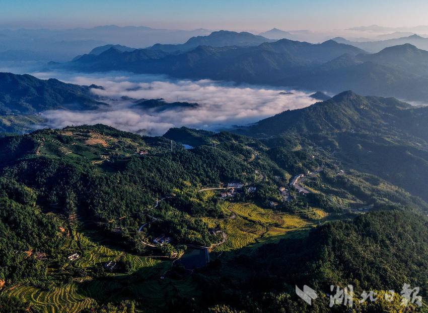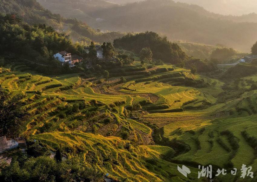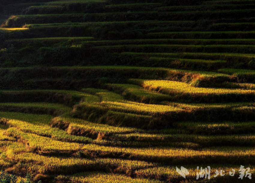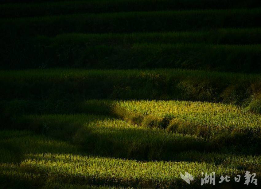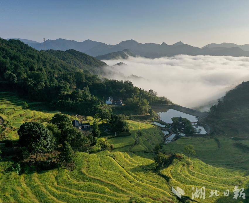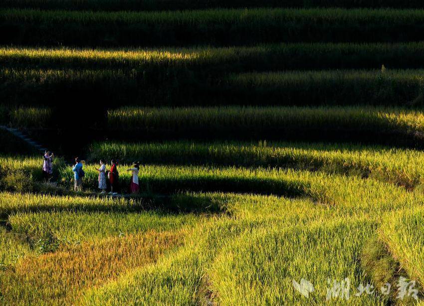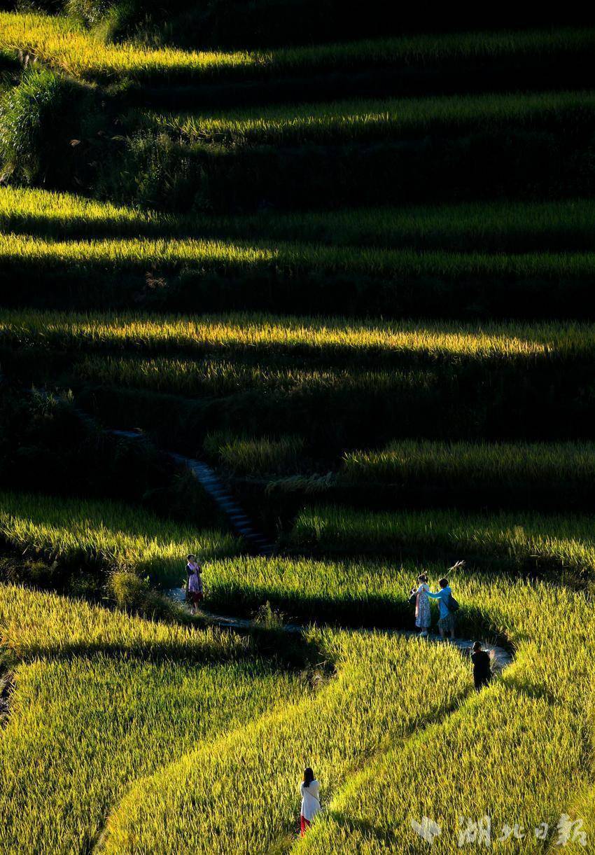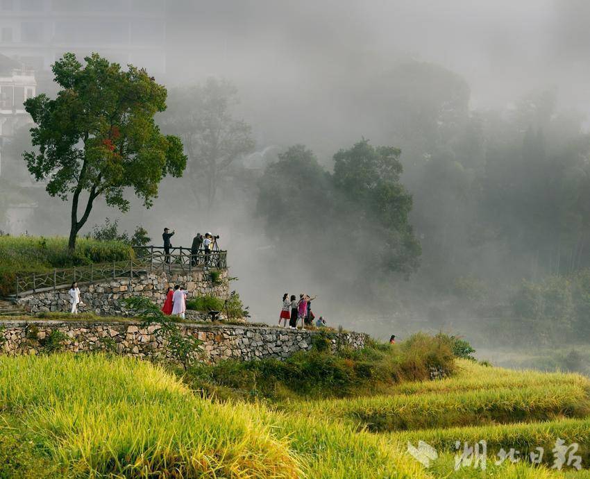 为定格这份独特的田园“丰景”,来自武汉、黄石、鄂州等地的摄影师与游客早早奔赴梯田景观台,静候捕捉稻菽翻浪、云海仙踪的动人画面。